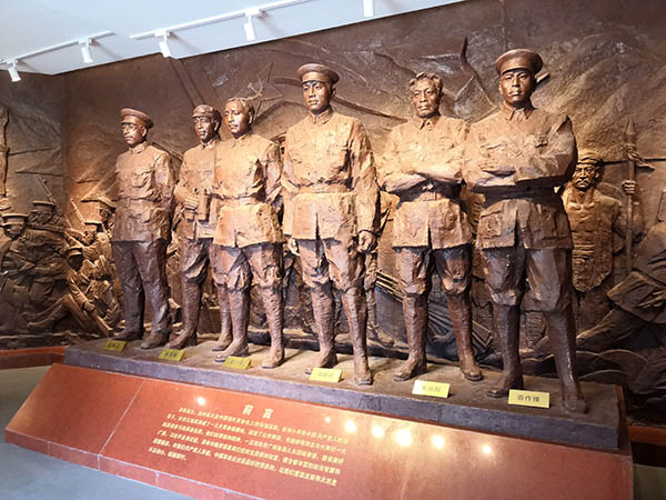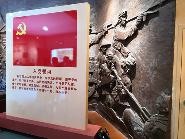在紀(jì)念館內(nèi),全體黨員在革命烈士雕像前重溫入黨誓詞,以此致敬先烈,向先烈學(xué)習(xí)。