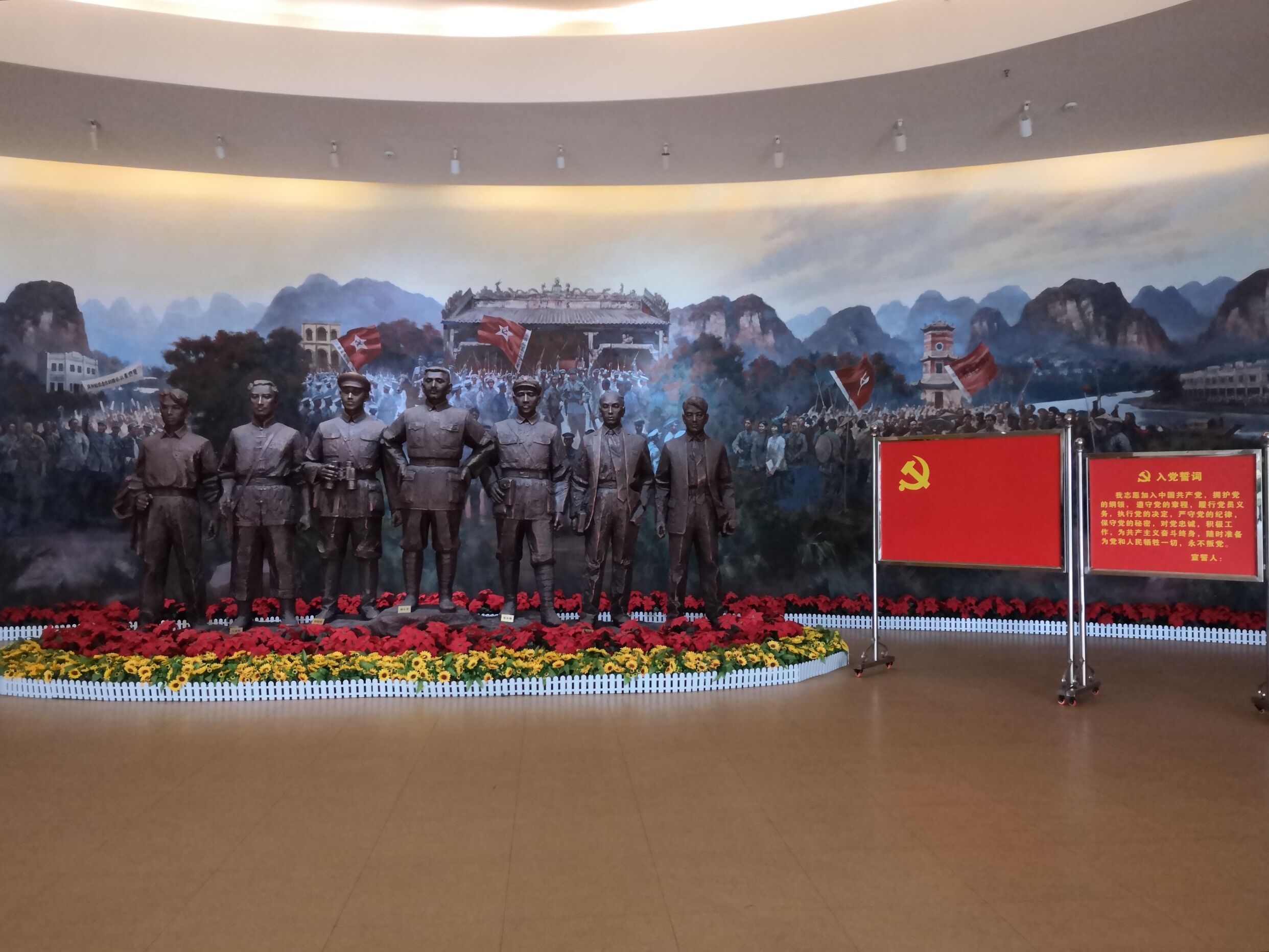 走進廣西革命紀念館,在七位革命偉人雕塑前,大家莊嚴宣誓,重溫入黨誓詞,接受革命傳統(tǒng)教育。