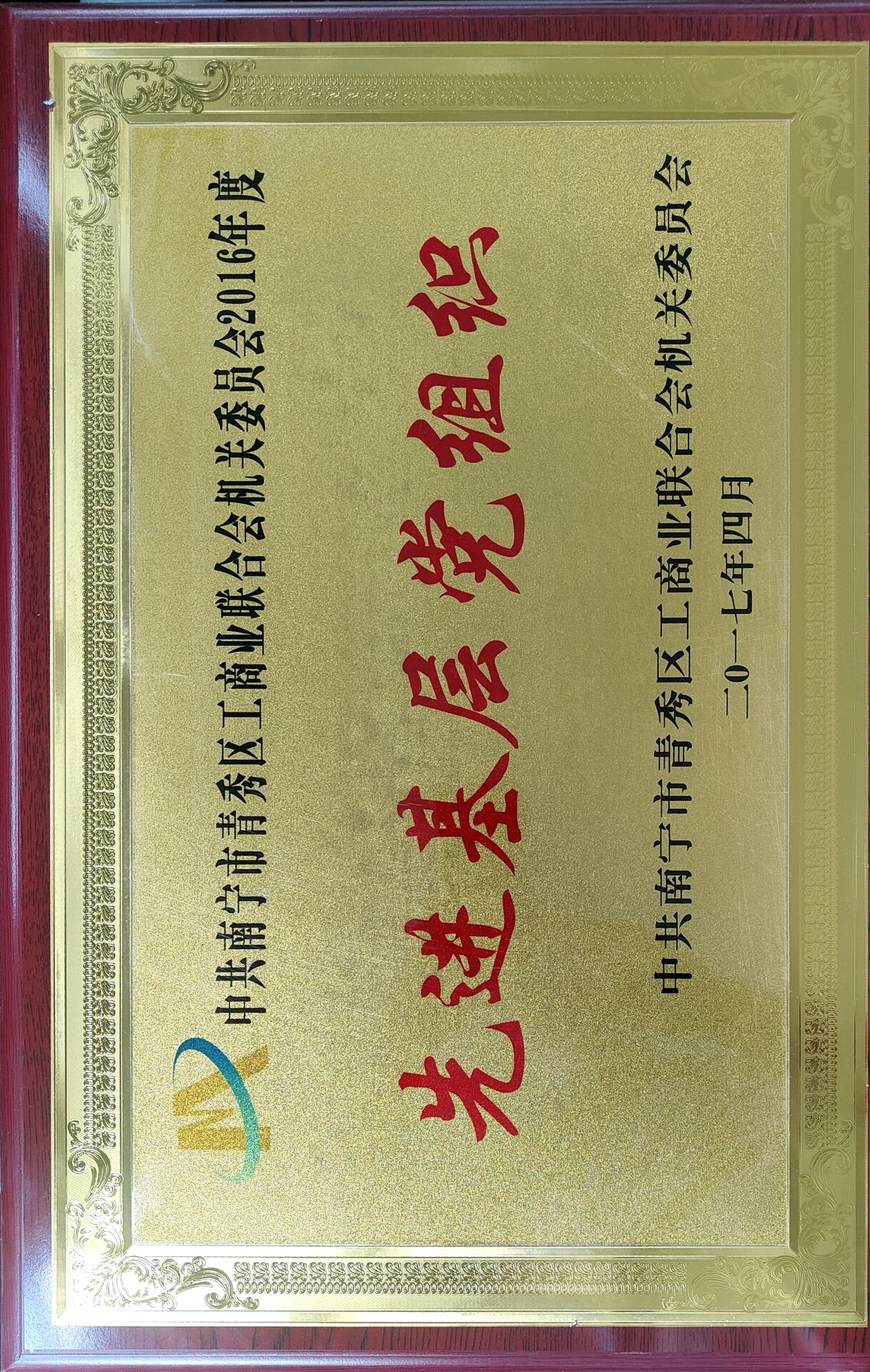 祝賀廣西貝森科技有限公司榮獲中共南寧市青秀區(qū)工商業(yè)聯(lián)合會機(jī)關(guān)委員會授予的2016年度“先進(jìn)基層黨組織”稱號